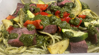 Pesto Steak Bites over Linguini with Italian Vegetables - ($15.00)